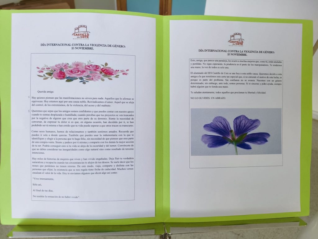 En el instituto IES Castillo de Cote hemos querido rendir homenaje al 25 de noviembre, Día Internacional de la Eliminación de la Violencia contra la Mujer, con una actividad muy especial que refleja la importancia de la unidad y el respeto.